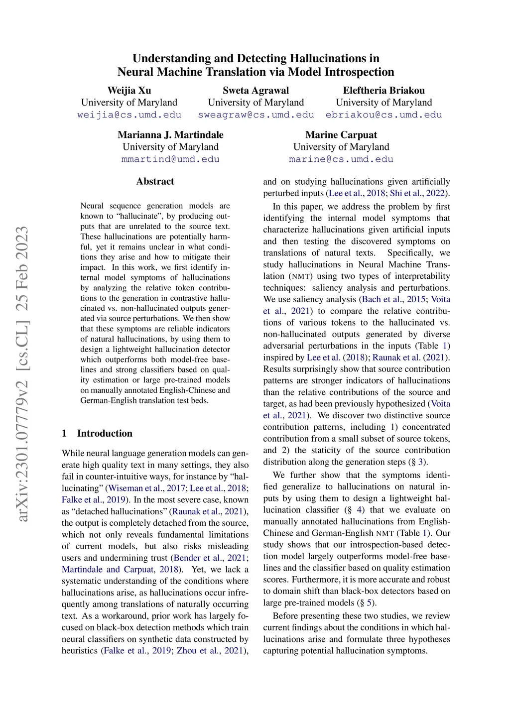 Understanding and Detecting Hallucinations in Neural Machine Translation