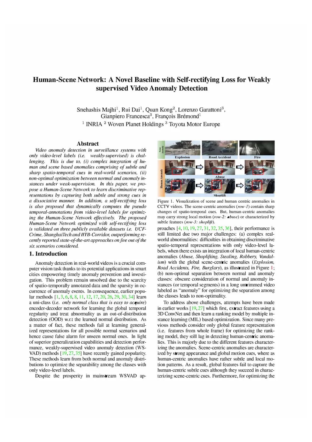 Video anomaly detection in surveillance systems with only video-level labels (i.e. weakly-supervised) is challenging. This is due to, (i) the complex integration of human and scene based anomalies comprising of subtle and sharp spatio-temporal cues in real-world scenarios, (ii) non-optimal optimization between normal and anomaly instances under weak supervision. In this paper, we propose a Human-Scene Network to learn discriminative representations by capturing both subtle and strong cues in a dissociative manner. In addition, a self-rectifying loss is also proposed that dynamically computes the pseudo temporal annotations from video-level labels for optimizing the Human-Scene Network effectively. The proposed Human-Scene Network optimized with self-rectifying loss is validated on three publicly available datasets i.e. UCF-Crime, ShanghaiTech and IITB-Corridor, outperforming recently reported state-of-the-art approaches on five out of the six scenarios considered.