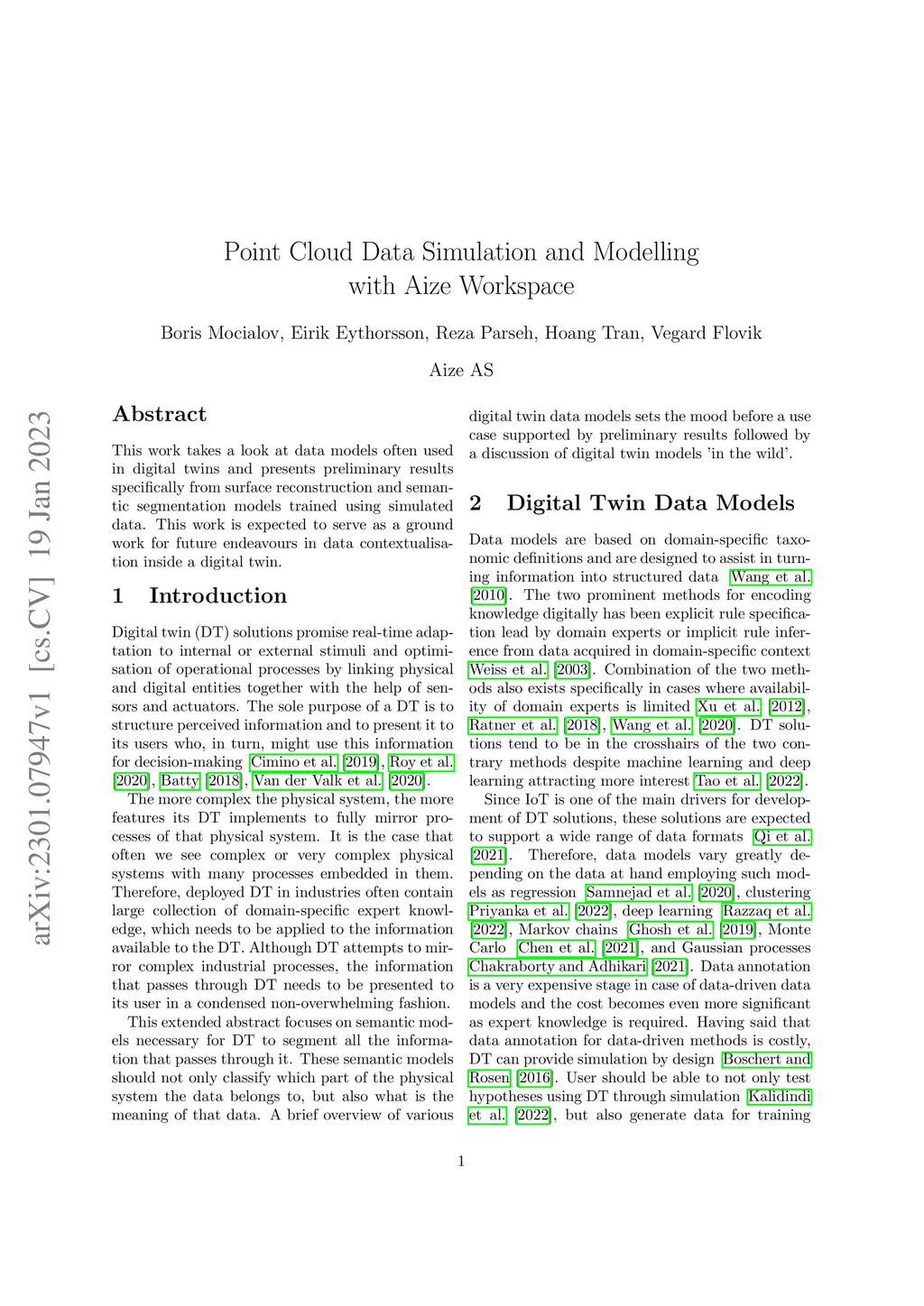 Point Cloud Data Simulation and Modelling with Aize Workspace