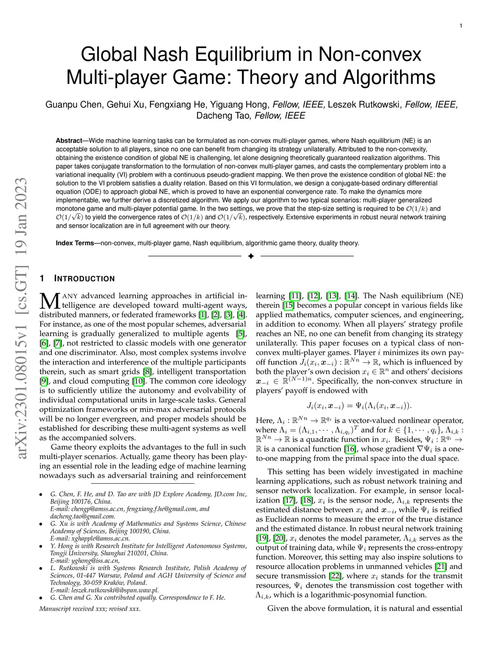 Global Nash Equilibrium in Non-convex Multi-player Game: Theory and