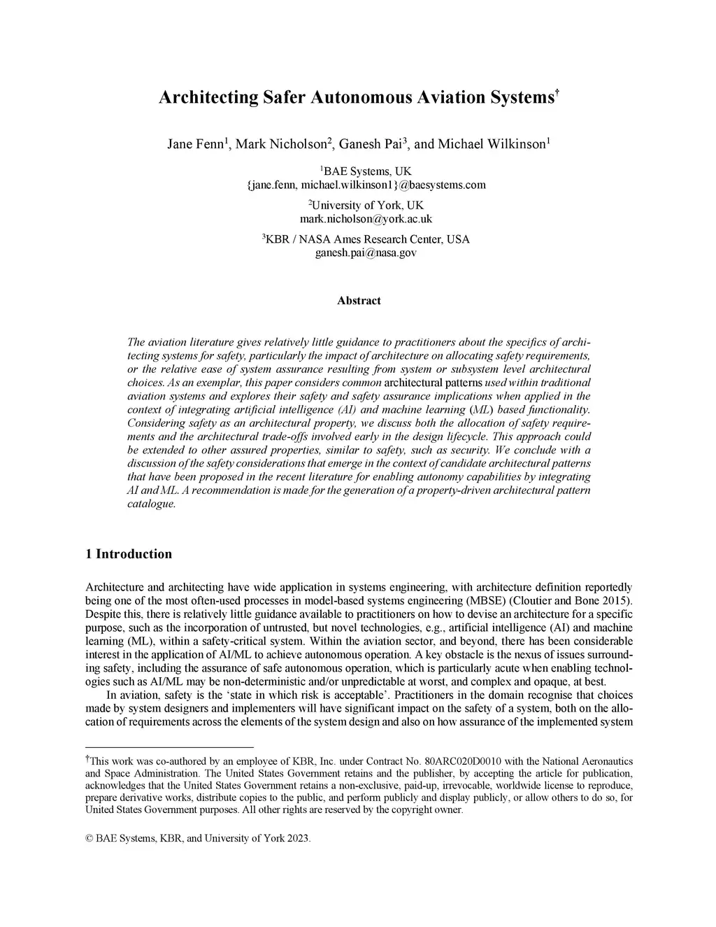 Architecting Safer Autonomous Aviation Systems