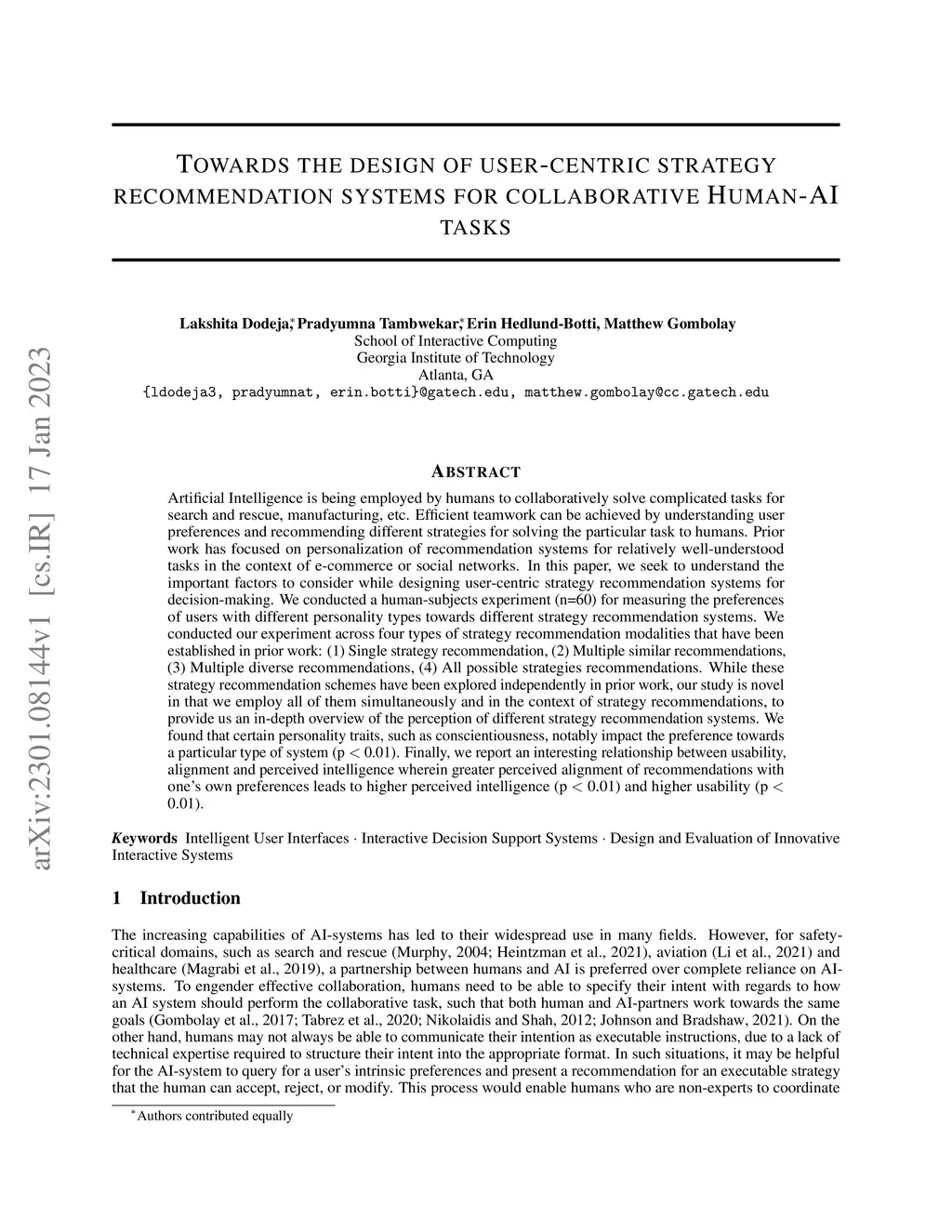 Artificial Intelligence is being employed by humans to collaboratively solve complicated tasks for search and rescue, manufacturing, etc. Efficient teamwork can be achieved by understanding user preferences and recommending different strategies for solving the particular task to humans. Prior work has focused on personalization of recommendation systems for relatively well-understood tasks in the context of e-commerce or social networks. In this paper, we seek to understand the important factors to consider while designing user-centric strategy recommendation systems for decision-making. We conducted a human-subjects experiment (n=60) for measuring the preferences of users with different personality types towards different strategy recommendation systems. We conducted our experiment across four types of strategy recommendation modalities that have been established in prior work: (1) Single strategy recommendation, (2) Multiple similar recommendations, (3) Multiple diverse recommendations, (4) All possible strategies recommendations. While these strategy recommendation schemes have been explored independently in prior work, our study is novel in that we employ all of them simultaneously and in the context of strategy recommendations, to provide us an in-depth overview of the perception of different strategy recommendation systems. We found that certain personality traits, such as conscientiousness, notably impact the preference towards a particular type of system (p < 0.01). Finally, we report an interesting relationship between usability, alignment and perceived intelligence wherein greater perceived alignment of recommendations with one's own preferences leads to higher perceived intelligence (p < 0.01) and higher usability (p < 0.01).