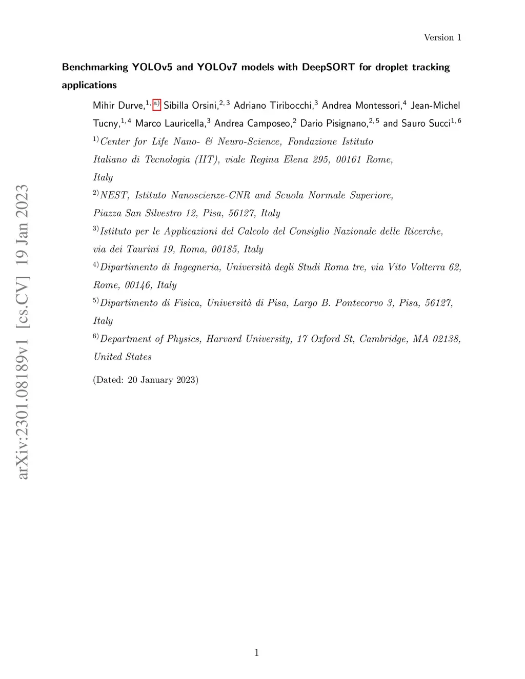 Benchmarking YOLOv5 and YOLOv7 models with DeepSORT for droplet tracking