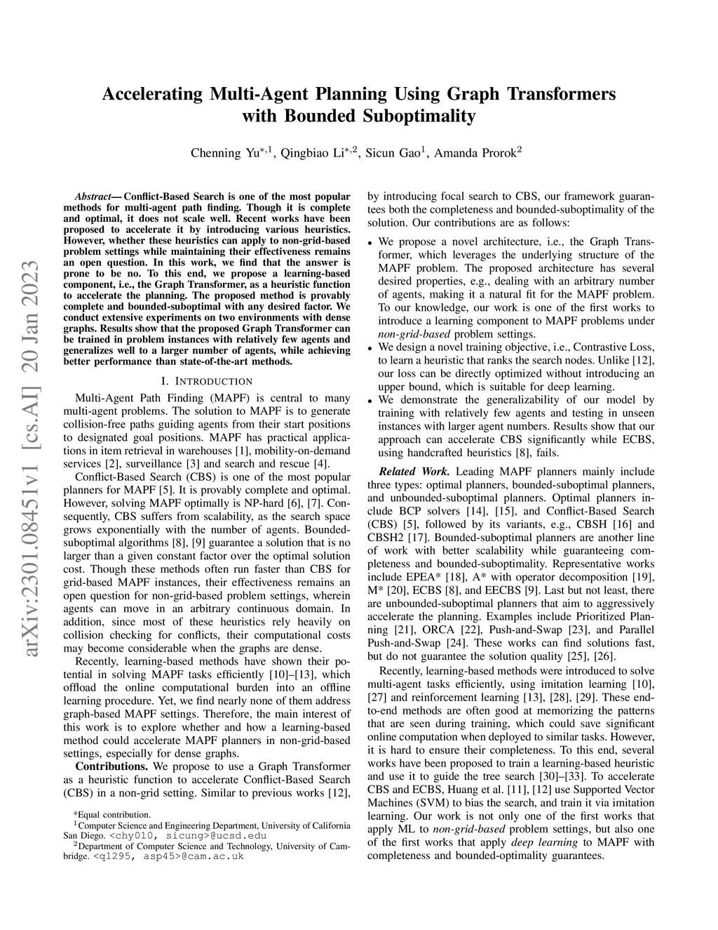 Conflict-Based Search is one of the most popular methods for multi-agent path finding. Though it is complete and optimal, it does not scale well. Recent works have been proposed to accelerate it by introducing various heuristics. However, whether these heuristics can apply to non-grid-based problem settings while maintaining their effectiveness remains an open question. In this work, we find that the answer is prone to be no. To this end, we propose a learning-based component, i.e., the Graph Transformer, as a heuristic function to accelerate the planning. The proposed method is provably complete and bounded-suboptimal with any desired factor. We conduct extensive experiments on two environments with dense graphs. Results show that the proposed Graph Transformer can be trained in problem instances with relatively few agents and generalizes well to a larger number of agents, while achieving better performance than state-of-the-art methods.
