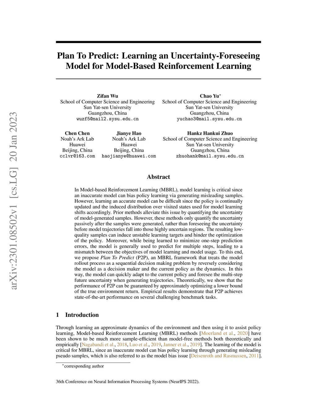 In Model-based Reinforcement Learning (MBRL), model learning is critical since an inaccurate model can bias policy learning via generating misleading samples. However, learning an accurate model can be difficult since the policy is continually updated and the induced distribution over visited states used for model learning shifts accordingly. Prior methods alleviate this issue by quantifying the uncertainty of model-generated samples. However, these methods only quantify the uncertainty passively after the samples were generated, rather than foreseeing the uncertainty before model trajectories fall into those highly uncertain regions. The resulting low-quality samples can induce unstable learning targets and hinder the optimization of the policy. Moreover, while being learned to minimize one-step prediction errors, the model is generally used to predict for multiple steps, leading to a mismatch between the objectives of model learning and model usage. To this end, we propose \emph{Plan To Predict} (P2P), an MBRL framework that treats the model rollout process as a sequential decision making problem by reversely considering the model as a decision maker and the current policy as the dynamics. In this way, the model can quickly adapt to the current policy and foresee the multi-step future uncertainty when generating trajectories. Theoretically, we show that the performance of P2P can be guaranteed by approximately optimizing a lower bound of the true environment return. Empirical results demonstrate that P2P achieves state-of-the-art performance on several challenging benchmark tasks.