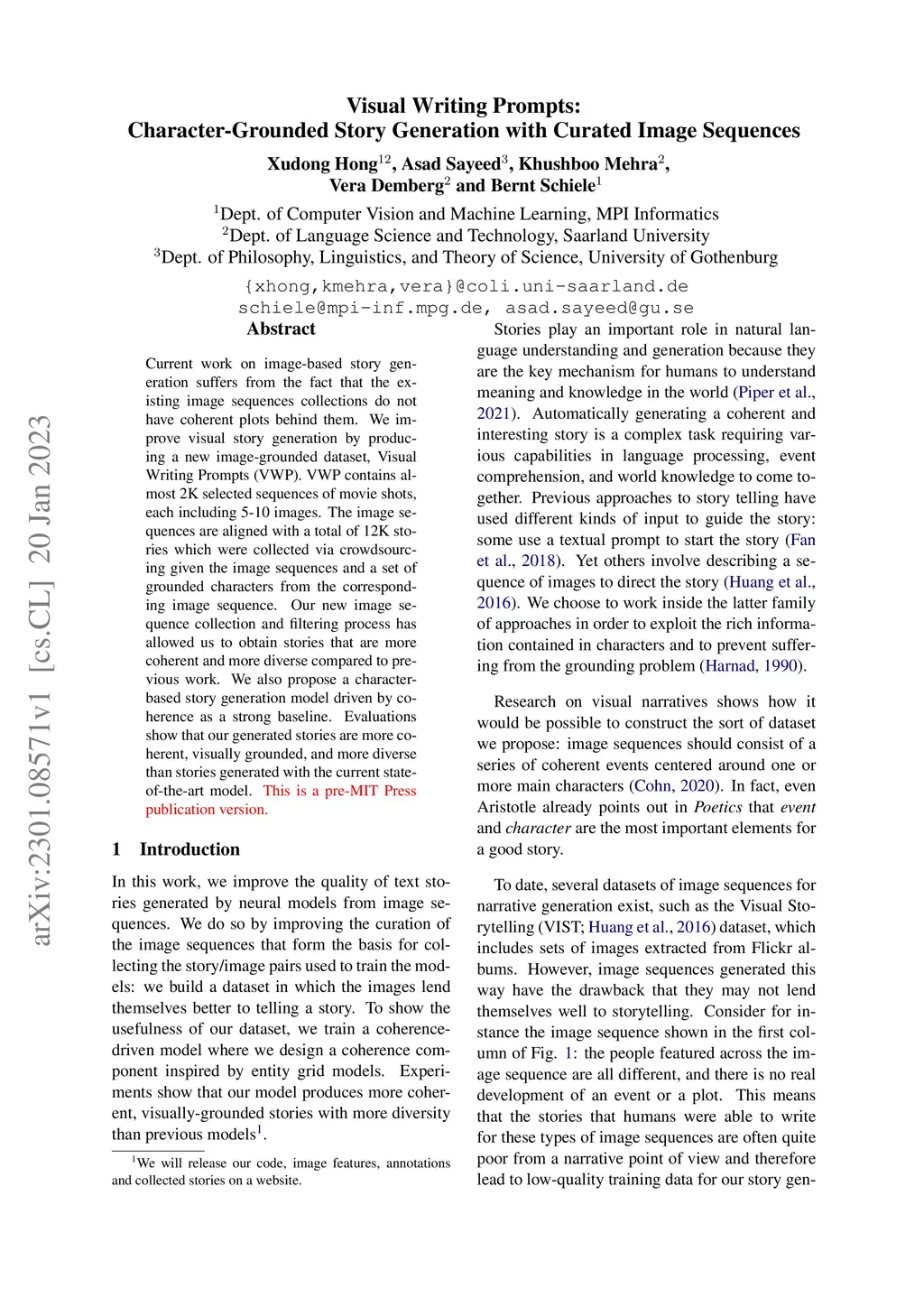 Visual Writing Prompts: Character-Grounded Story Generation with Curated