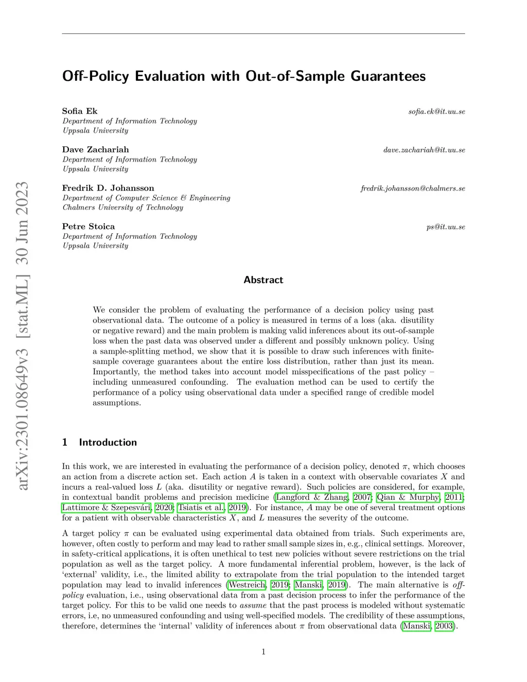 Off-Policy Evaluation with Out-of-Sample Guarantees