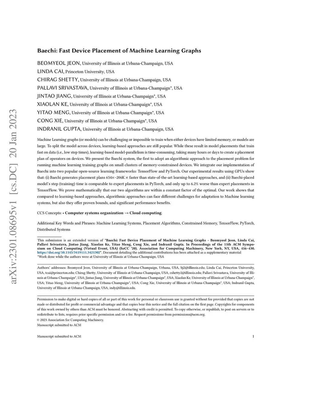 Baechi: Fast Device Placement of Machine Learning Graphs