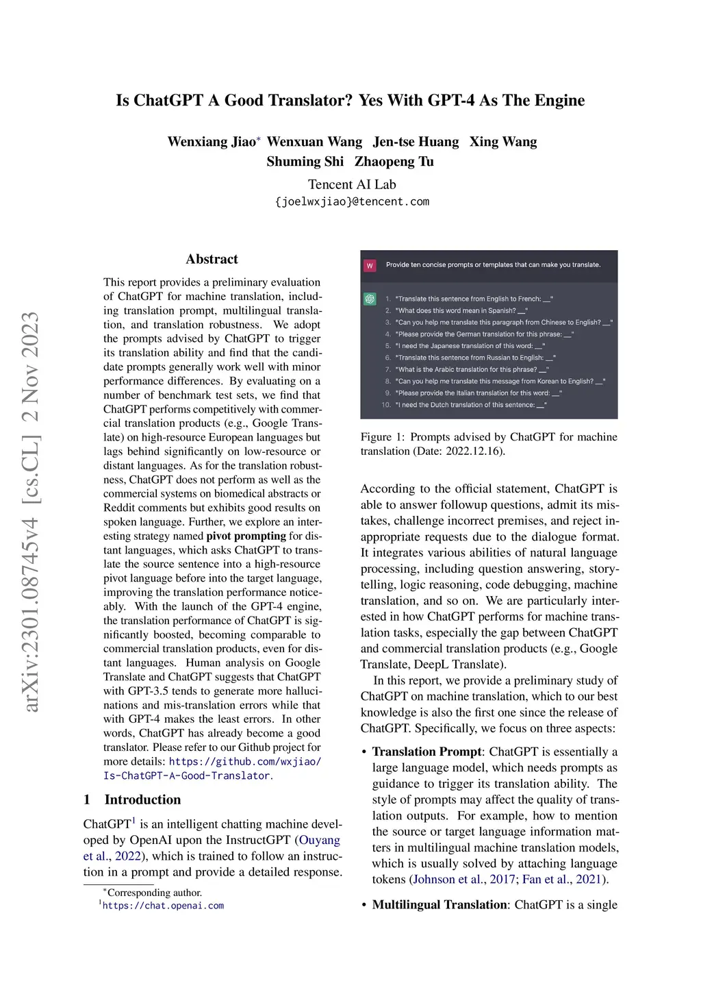 Is ChatGPT A Good Translator? Yes With GPT-4 As The Engine