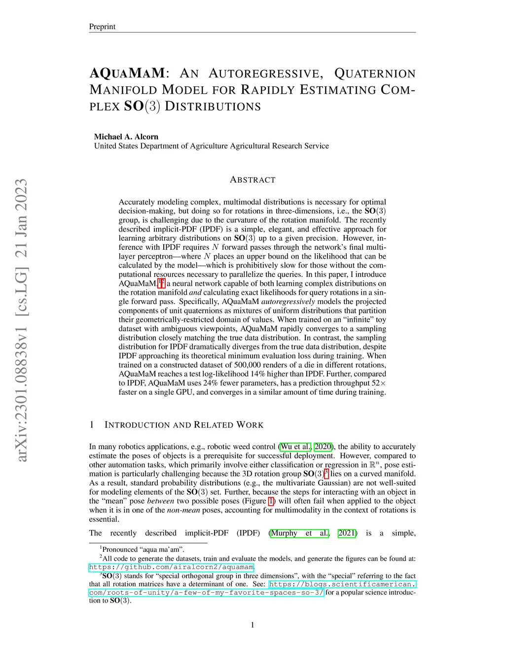 Accurately modeling complex, multimodal distributions for rotations in three-dimensions, i.e., the SO(3) group, is challenging due to the curvature of the rotation manifold. The recently described implicit-PDF (IPDF) is a simple, elegant, and effective approach for learning arbitrary distributions on SO(3) up to a given precision. However, inference with IPDF requires forward passes through the network's final multilayer perceptron (where places an upper bound on the likelihood that can be calculated by the model), which is prohibitively slow for those without the computational resources necessary to parallelize the queries. In this paper, I introduce AQuaMaM, a neural network capable of both learning complex distributions on the rotation manifold and calculating exact likelihoods for query rotations in a single forward pass. Specifically, AQuaMaM autoregressively models the projected components of unit quaternions as mixtures of uniform distributions that partition their geometrically-restricted domain of values. When trained on an "infinite" toy dataset with ambiguous viewpoints, AQuaMaM rapidly converges to a sampling distribution closely matching the true data distribution. In contrast, the sampling distribution for IPDF dramatically diverges from the true data distribution, despite IPDF approaching its theoretical minimum evaluation loss during training. When trained on a constructed dataset of 500,000 renders of a die in different rotations, AQuaMaM reaches a test log-likelihood 14% higher than IPDF. Further, compared to IPDF, AQuaMaM uses 24% fewer parameters, has a prediction throughput 52 faster on a single GPU, and converges in a similar amount of time during training.