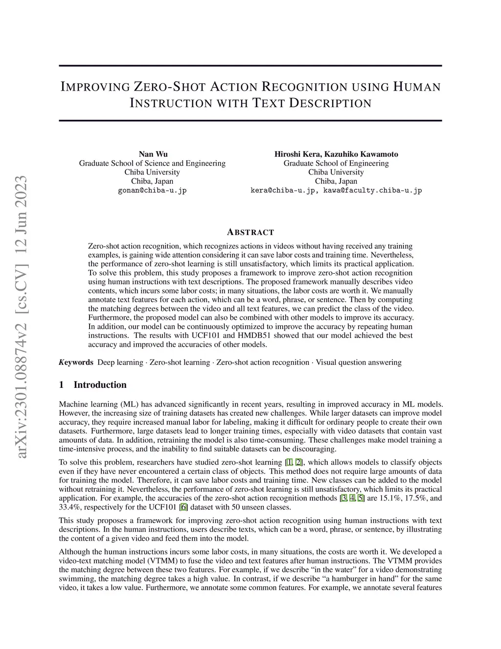 Improving Zero-Shot Action Recognition using Human Instruction with Text