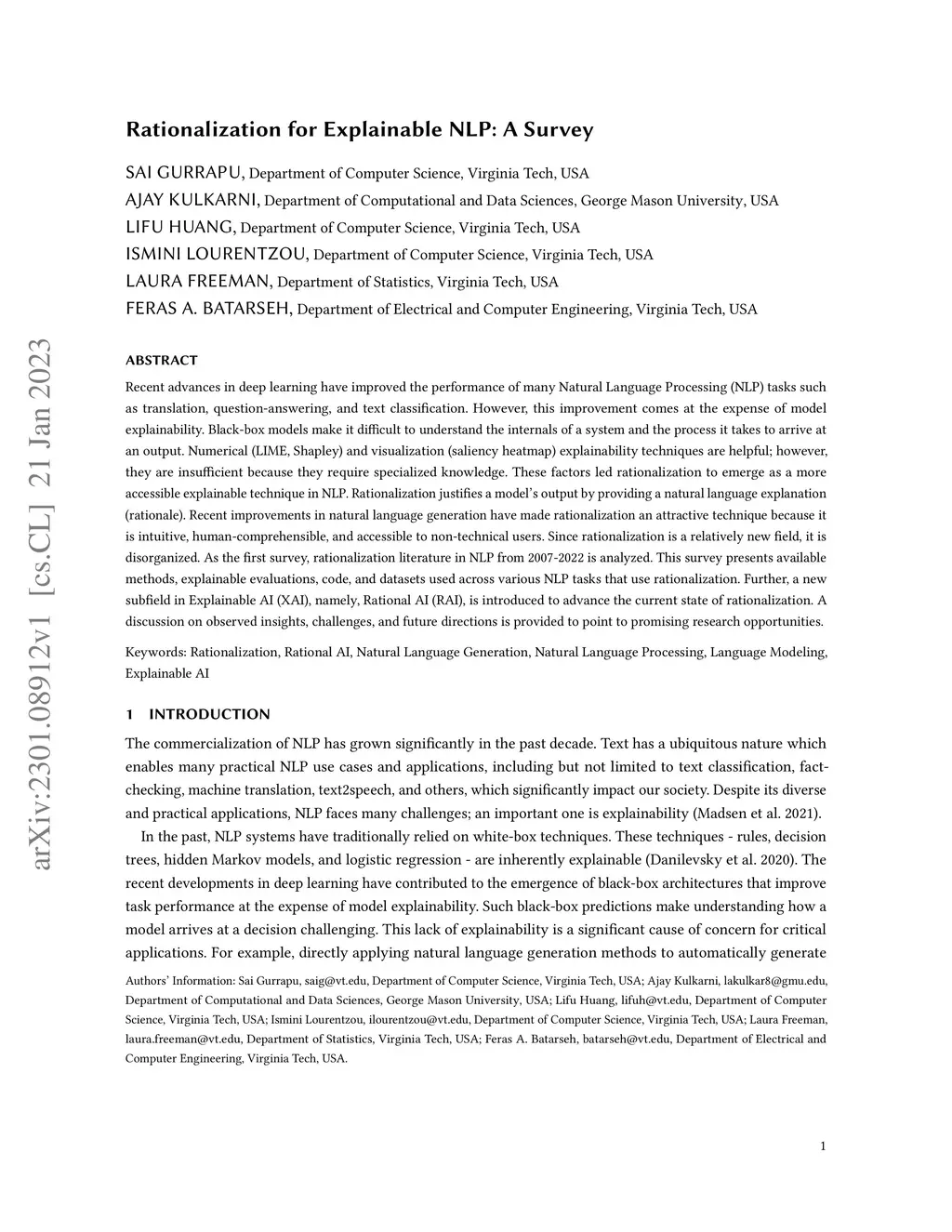 Rationalization for Explainable NLP: A Survey