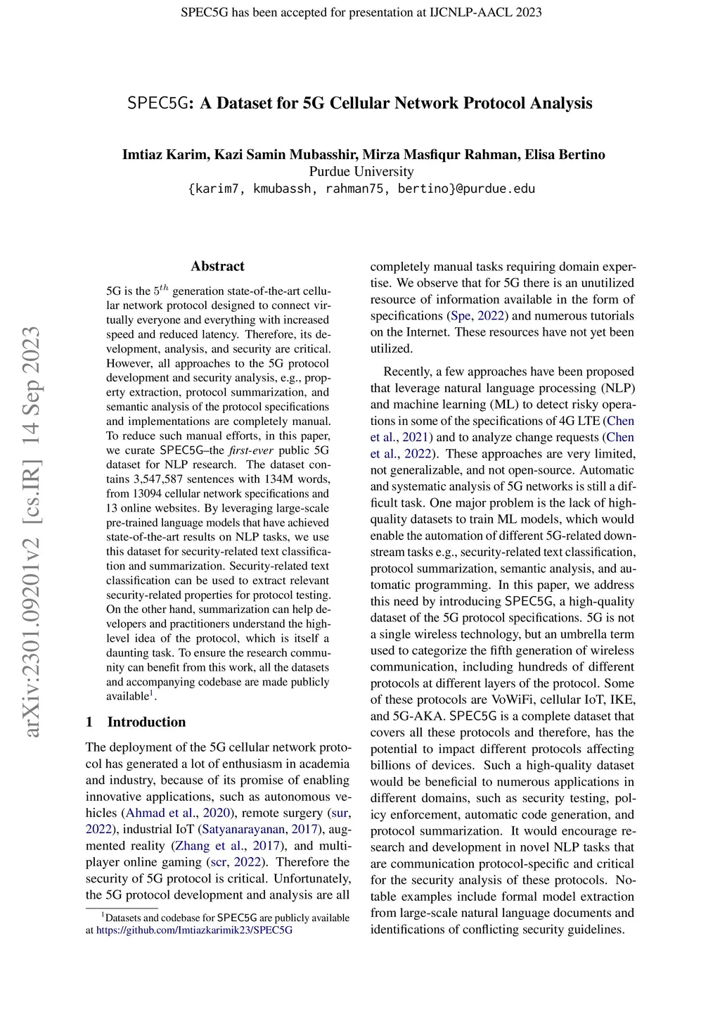 SPEC5G: A Dataset for 5G Cellular Network Protocol Analysis