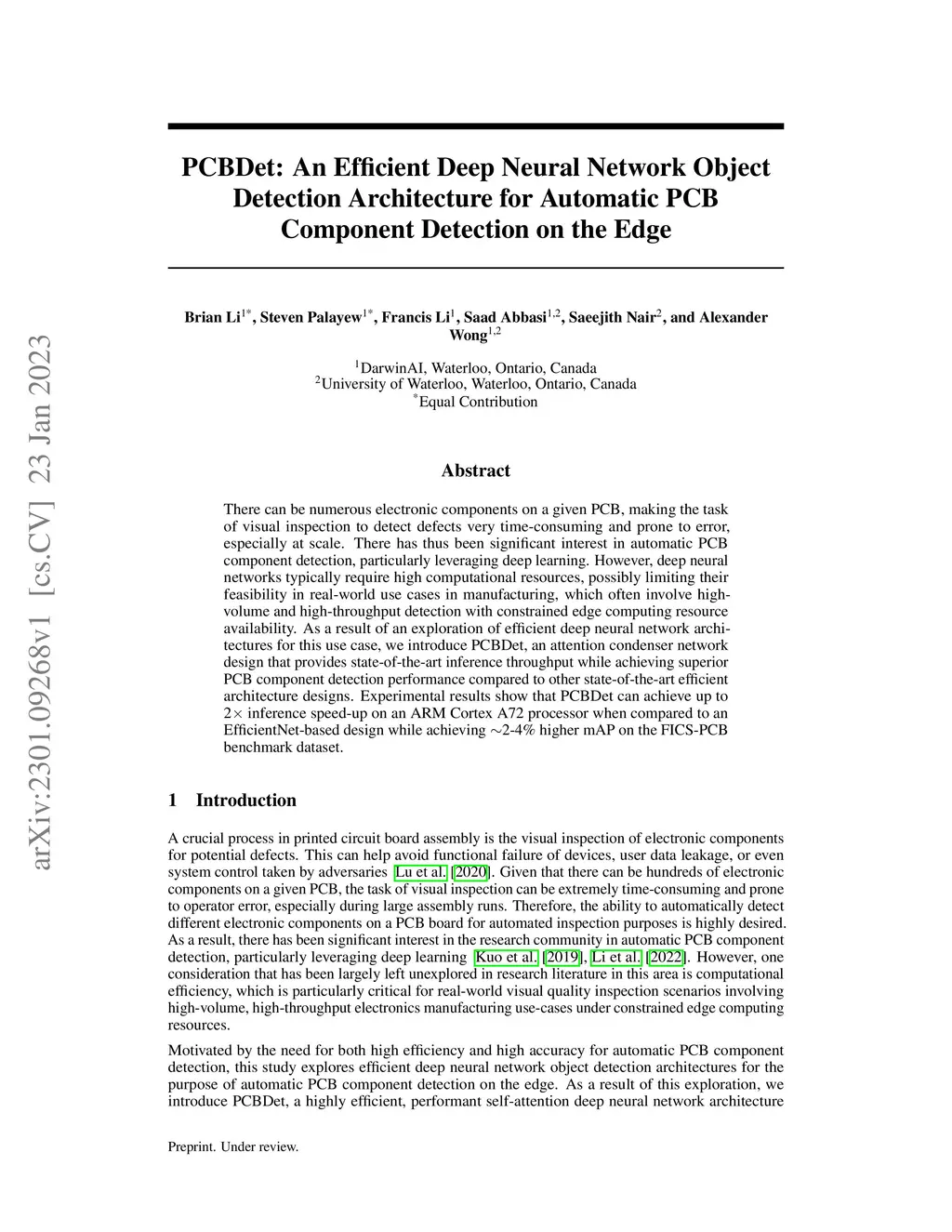 PCBDet: An Efficient Deep Neural Network Object Detection Architecture