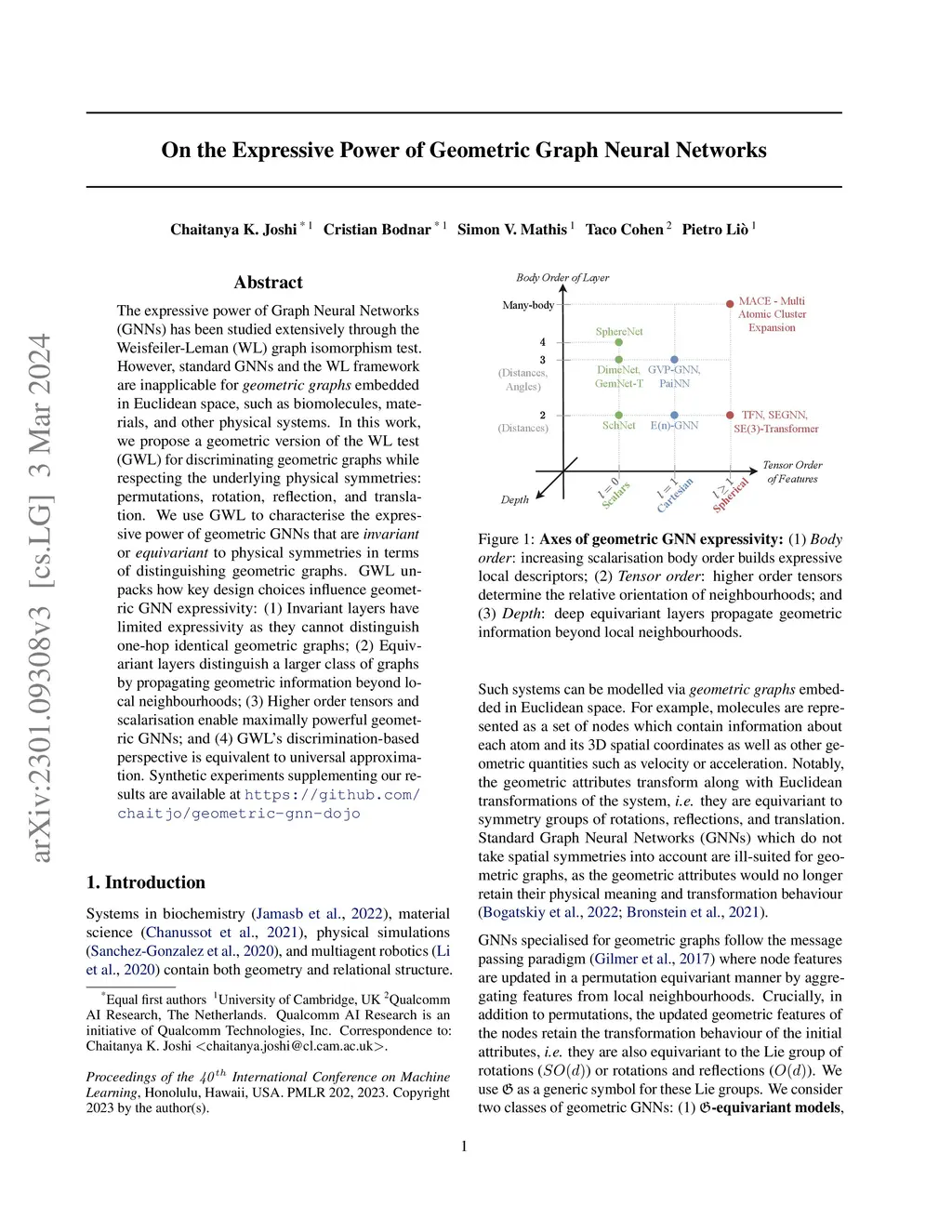 The expressive power of Graph Neural Networks (GNNs) has been studied extensively through the Weisfeiler-Leman (WL) graph isomorphism test. However, standard GNNs and the WL framework are inapplicable for geometric graphs embedded in Euclidean space, such as biomolecules, materials, and other physical systems. In this work, we propose a geometric version of the WL test (GWL) for discriminating geometric graphs while respecting the underlying physical symmetries: permutations, rotation, reflection, and translation. We use GWL to characterise the expressive power of geometric GNNs that are invariant or equivariant to physical symmetries in terms of distinguishing geometric graphs. GWL unpacks how key design choices influence geometric GNN expressivity: (1) Invariant layers have limited expressivity as they cannot distinguish one-hop identical geometric graphs; (2) Equivariant layers distinguish a larger class of graphs by propagating geometric information beyond local neighbourhoods; (3) Higher order tensors and scalarisation enable maximally powerful geometric GNNs; and (4) GWL's discrimination-based perspective is equivalent to universal approximation. Synthetic experiments supplementing our results are available at \url{https://github.com/chaitjo/geometric-gnn-dojo}