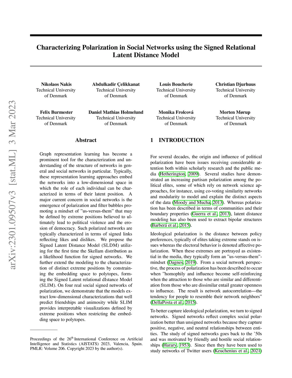 Graph representation learning has become a prominent tool for the characterization and understanding of the structure of networks in general and social networks in particular. Typically, these representation learning approaches embed the networks into a low-dimensional space in which the role of each individual can be characterized in terms of their latent position. A major current concern in social networks is the emergence of polarization and filter bubbles promoting a mindset of "us-versus-them" that may be defined by extreme positions believed to ultimately lead to political violence and the erosion of democracy. Such polarized networks are typically characterized in terms of signed links reflecting likes and dislikes. We propose the latent Signed relational Latent dIstance Model (SLIM) utilizing for the first time the Skellam distribution as a likelihood function for signed networks and extend the modeling to the characterization of distinct extreme positions by constraining the embedding space to polytopes. On four real social signed networks of polarization, we demonstrate that the model extracts low-dimensional characterizations that well predict friendships and animosity while providing interpretable visualizations defined by extreme positions when endowing the model with an embedding space restricted to polytopes.