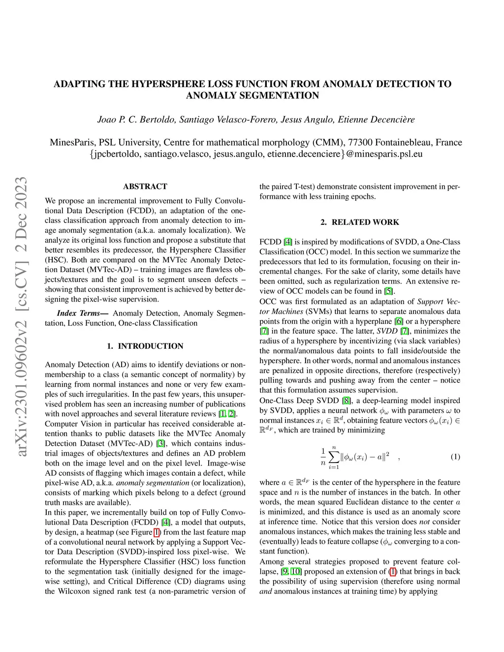 Adapting the Hypersphere Loss Function from Anomaly Detection to Anomaly