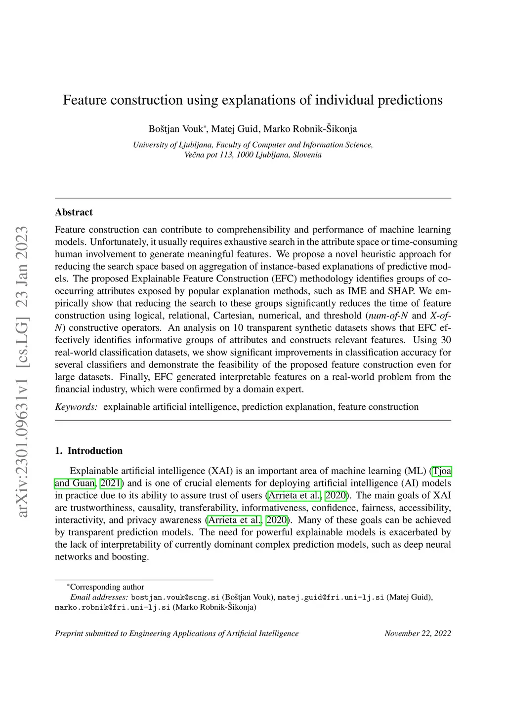 Feature construction using explanations of individual predictions