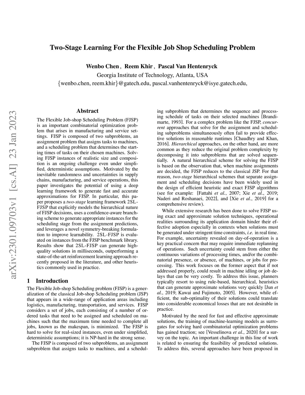 Two-Stage Learning For the Flexible Job Shop Scheduling Problem