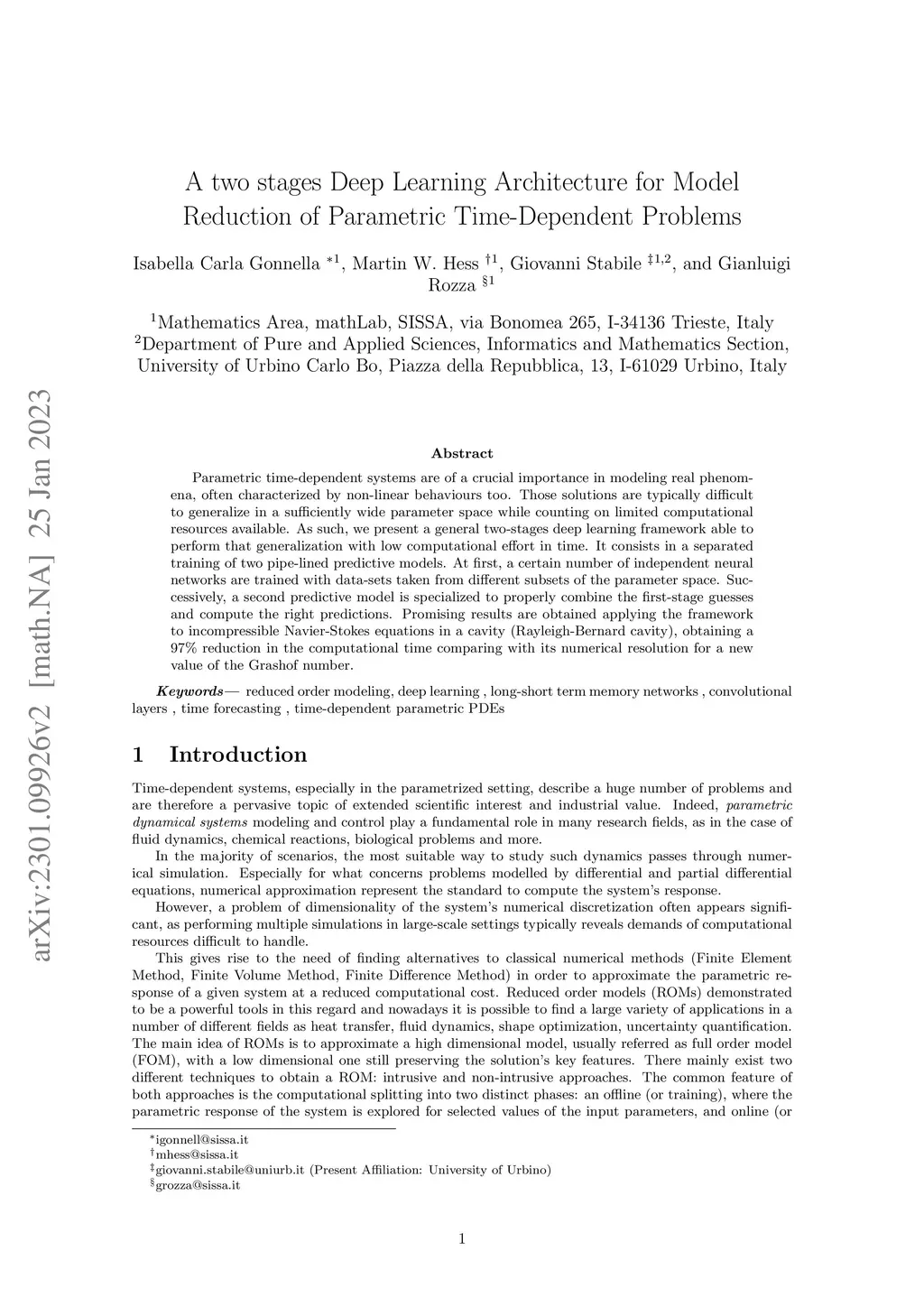 A two stages Deep Learning Architecture for Model Reduction of