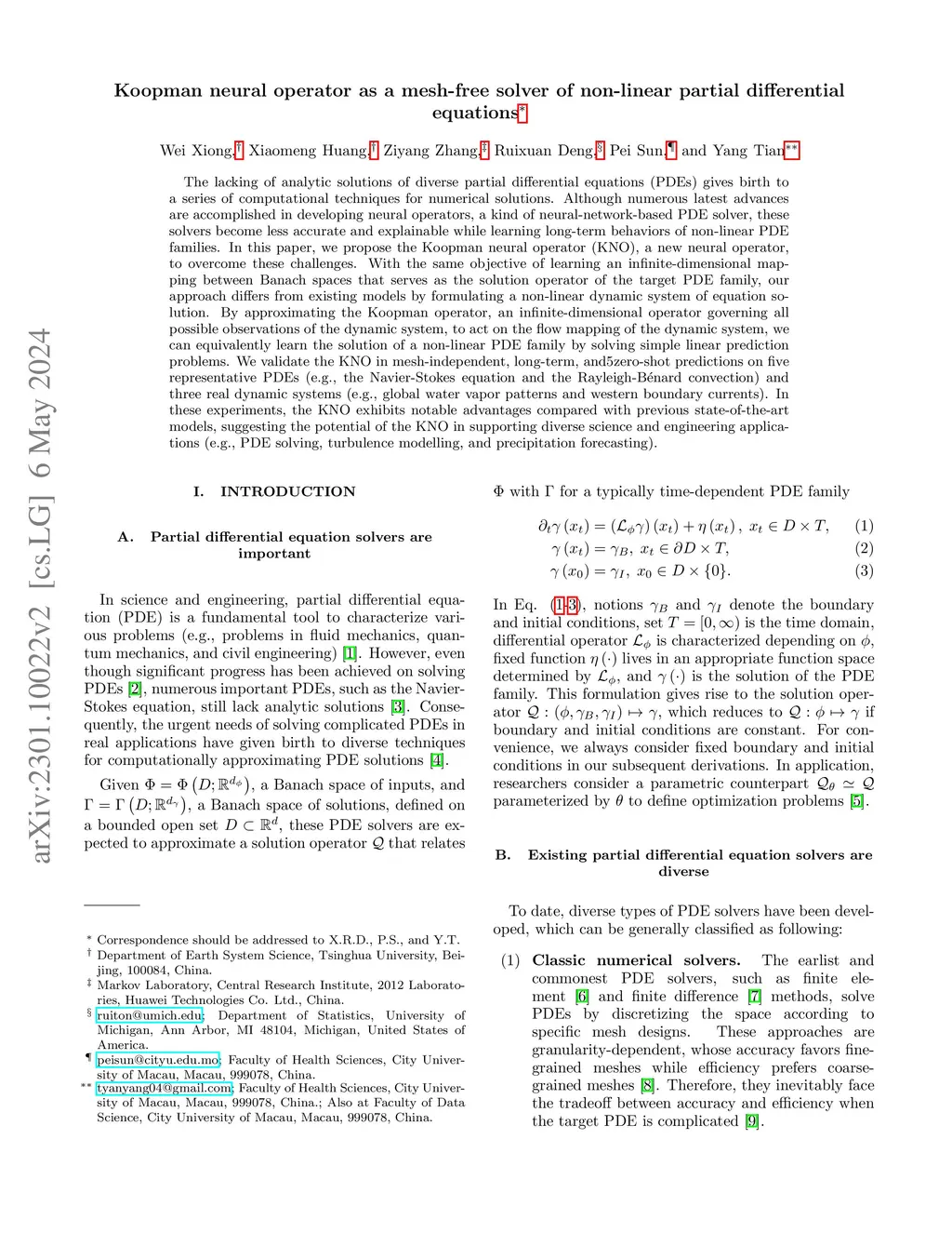 Koopman neural operator as a mesh-free solver of non-linear partial