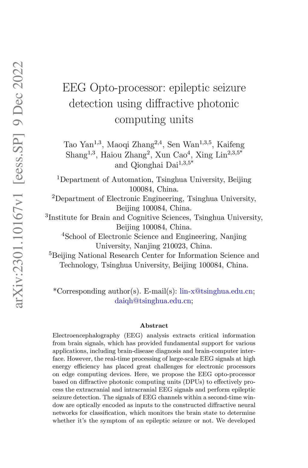 EEG Opto-processor: epileptic seizure detection using diffractive