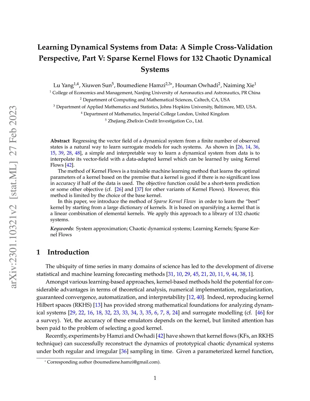 Learning Dynamical Systems from Data: A Simple Cross-Validation Perspective, Part V: Sparse Kernel Flows for 132 Chaotic Dynamical Systems
