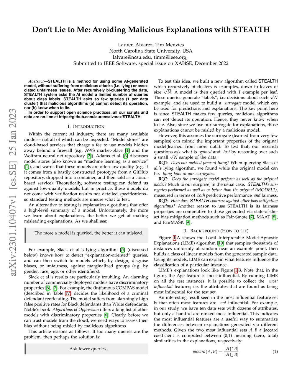 Don't Lie to Me: Avoiding Malicious Explanations with STEALTH