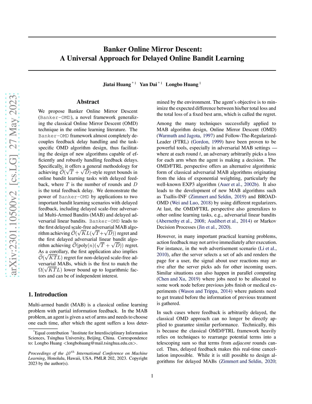 We propose Banker Online Mirror Descent (Banker-OMD), a novel framework generalizing the classical Online Mirror Descent (OMD) technique in the online learning literature. The Banker-OMD framework almost completely decouples feedback delay handling and the task-specific OMD algorithm design, thus facilitating the design of new algorithms capable of efficiently and robustly handling feedback delays. Specifically, it offers a general methodology for achieving -style regret bounds in online bandit learning tasks with delayed feedback, where is the number of rounds and is the total feedback delay. We demonstrate the power of \texttt{Banker-OMD} by applications to two important bandit learning scenarios with delayed feedback, including delayed scale-free adversarial Multi-Armed Bandits (MAB) and delayed adversarial linear bandits. \texttt{Banker-OMD} leads to the first delayed scale-free adversarial MAB algorithm achieving regret and the first delayed adversarial linear bandit algorithm achieving regret. As a corollary, the first application also implies regret for non-delayed scale-free adversarial MABs, which is the first to match the lower bound up to logarithmic factors and can be of independent interest.