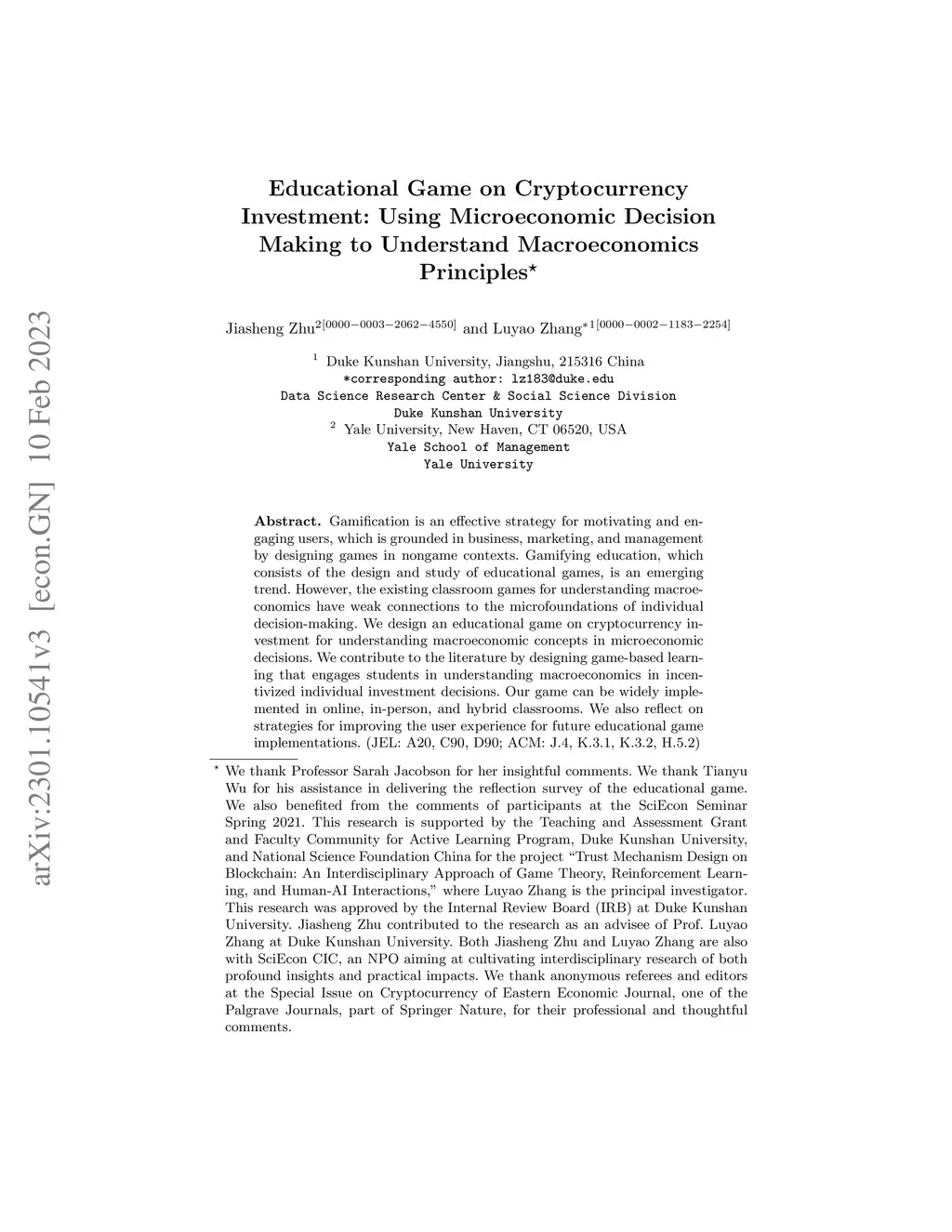 Educational Game on Cryptocurrency Investment: Using Microeconomic