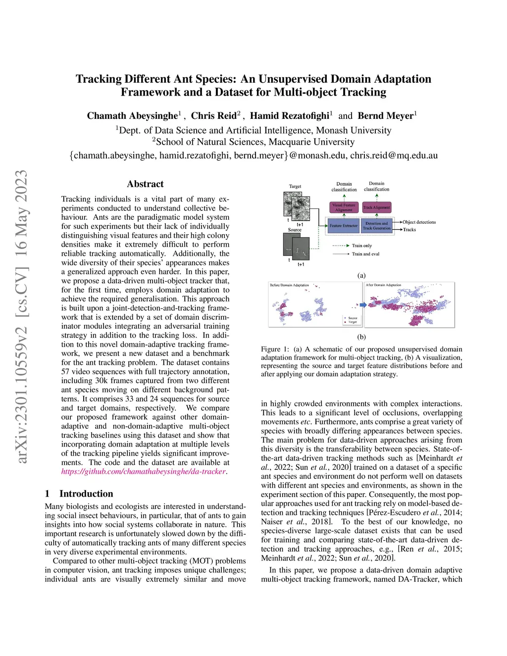 Tracking Different Ant Species: An Unsupervised Domain Adaptation