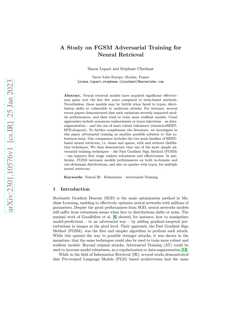 A Study on FGSM Adversarial Training for Neural Retrieval