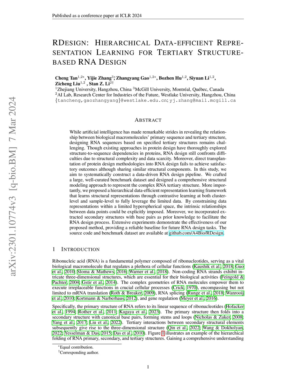 RDesign: Hierarchical Data-efficient Representation Learning for