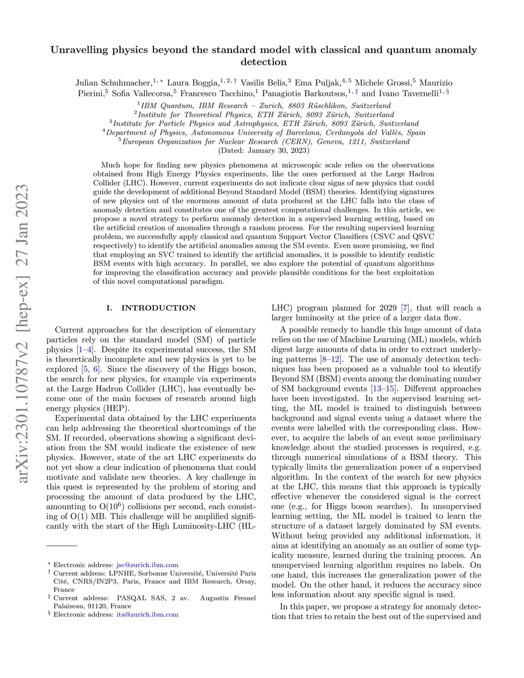 Much hope for finding new physics phenomena at microscopic scale relies on the observations obtained from High Energy Physics experiments, like the ones performed at the Large Hadron Collider (LHC). However, current experiments do not indicate clear signs of new physics that could guide the development of additional Beyond Standard Model (BSM) theories. Identifying signatures of new physics out of the enormous amount of data produced at the LHC falls into the class of anomaly detection and constitutes one of the greatest computational challenges. In this article, we propose a novel strategy to perform anomaly detection in a supervised learning setting, based on the artificial creation of anomalies through a random process. For the resulting supervised learning problem, we successfully apply classical and quantum Support Vector Classifiers (CSVC and QSVC respectively) to identify the artificial anomalies among the SM events. Even more promising, we find that employing an SVC trained to identify the artificial anomalies, it is possible to identify realistic BSM events with high accuracy. In parallel, we also explore the potential of quantum algorithms for improving the classification accuracy and provide plausible conditions for the best exploitation of this novel computational paradigm.