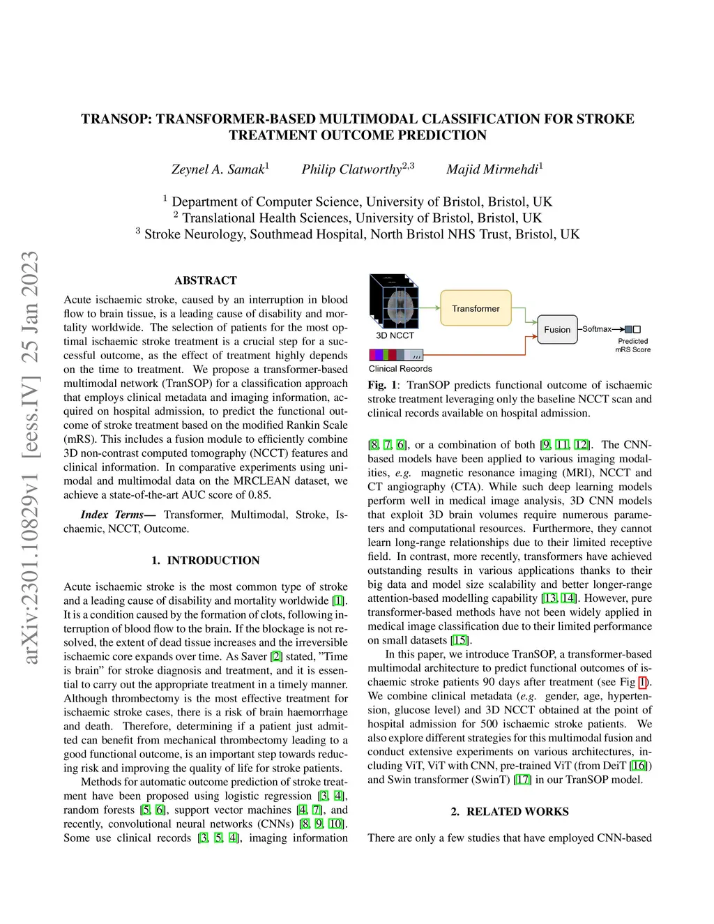 TranSOP: Transformer-based Multimodal Classification for Stroke