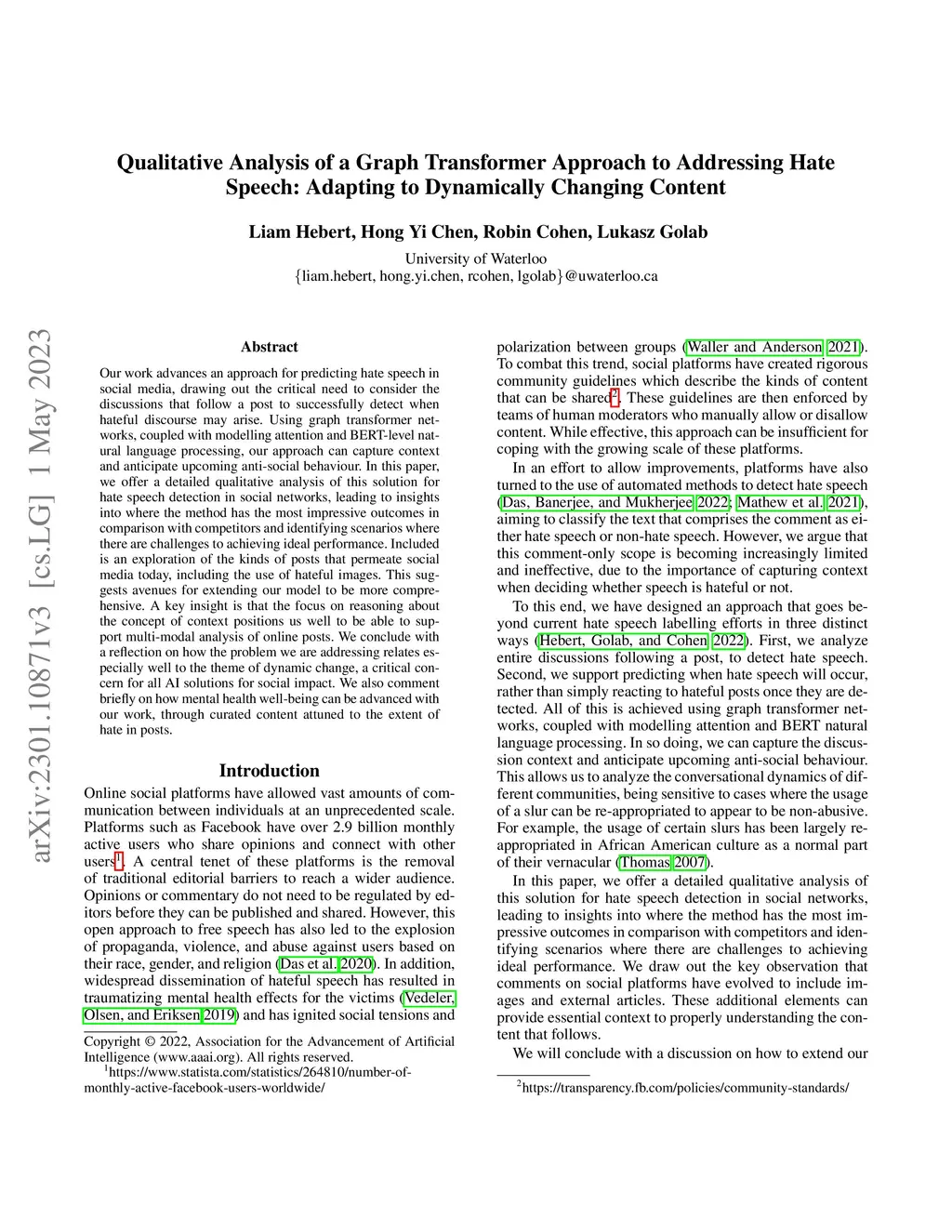 Qualitative Analysis of a Graph Transformer Approach to Addressing Hate