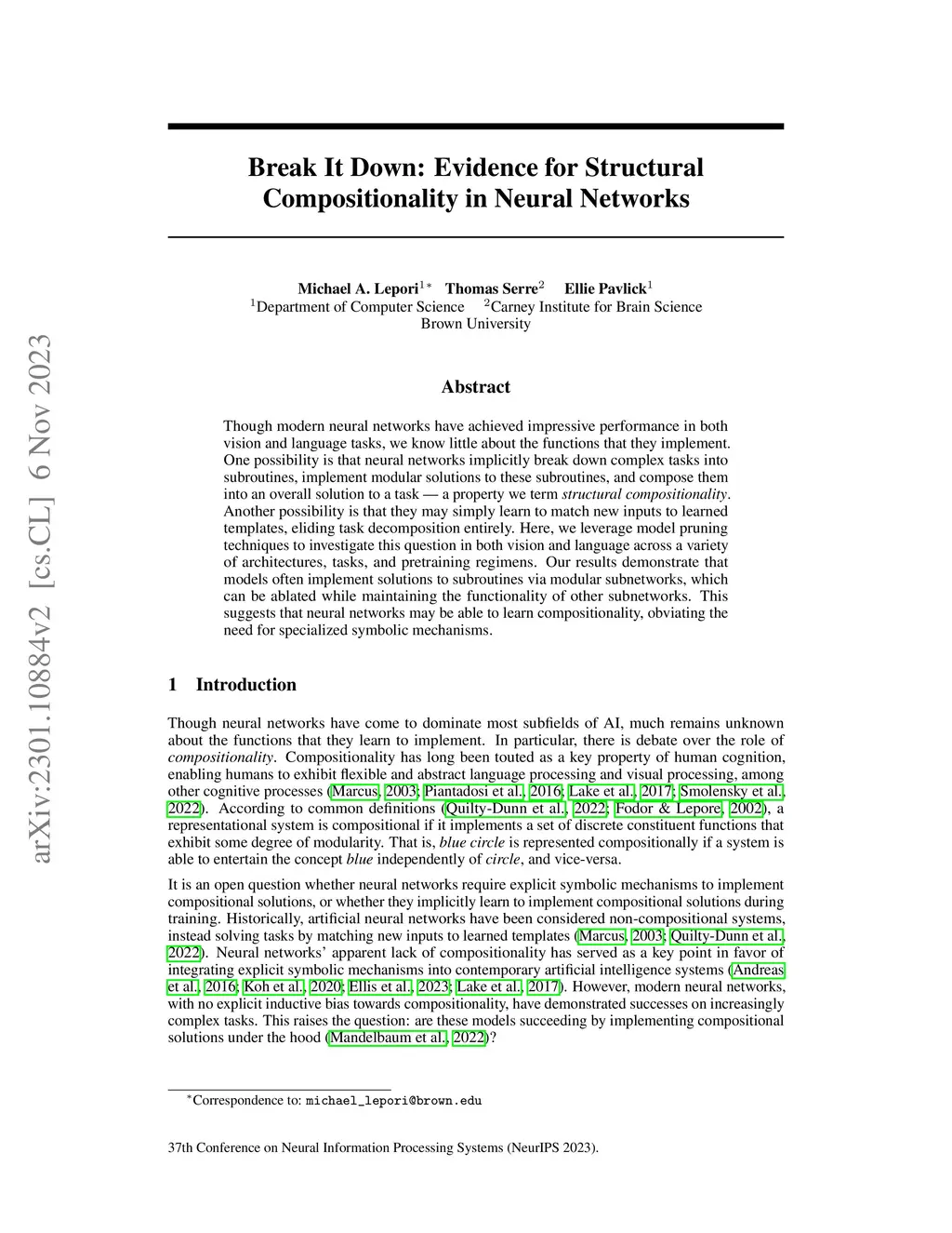Break It Down: Evidence for Structural Compositionality in Neural