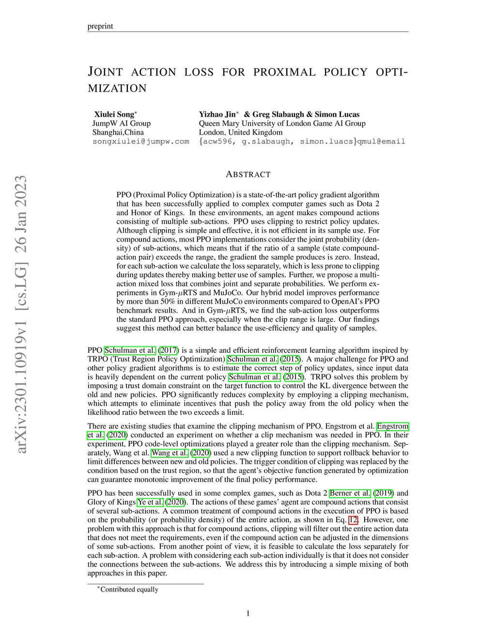 Joint action loss for proximal policy optimization