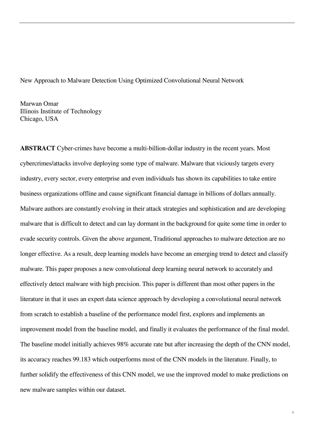 New Approach to Malware Detection Using Optimized Convolutional Neural