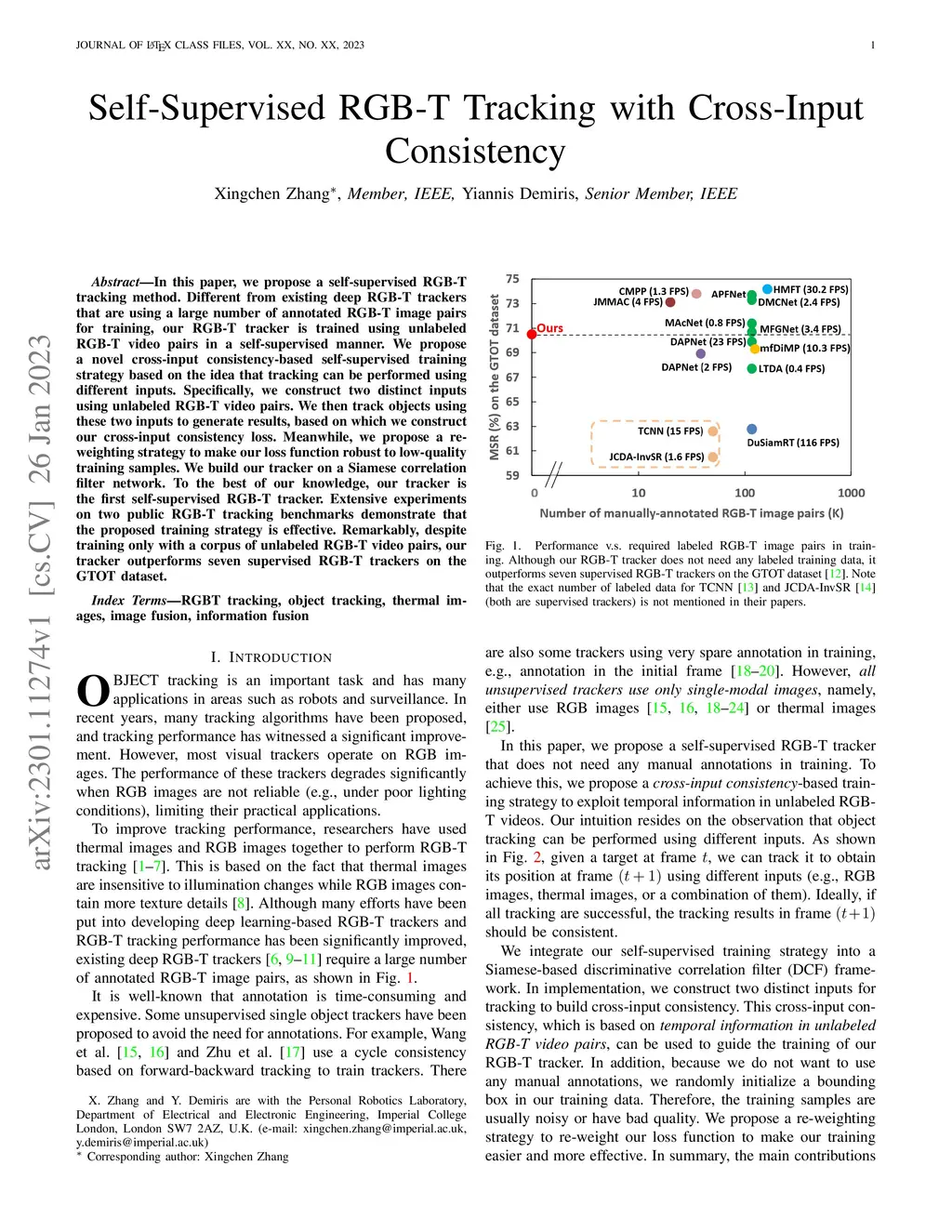 Self-Supervised RGB-T Tracking with Cross-Input Consistency