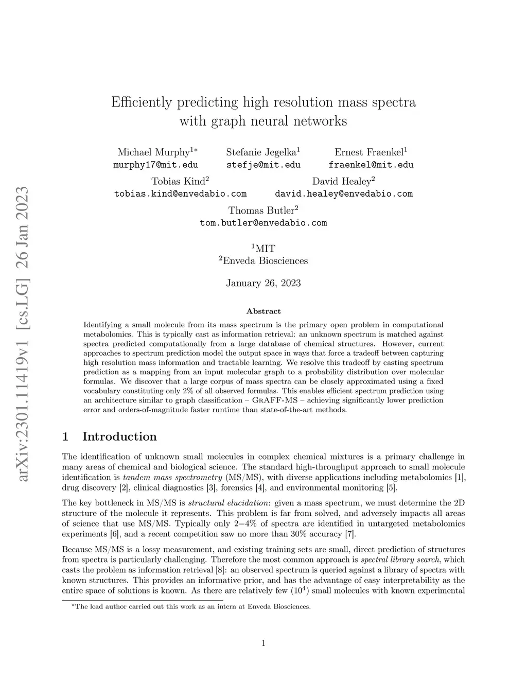 Identifying a small molecule from its mass spectrum is the primary open problem in computational metabolomics. This is typically cast as information retrieval: an unknown spectrum is matched against spectra predicted computationally from a large database of chemical structures. However, current approaches to spectrum prediction model the output space in ways that force a tradeoff between capturing high resolution mass information and tractable learning. We resolve this tradeoff by casting spectrum prediction as a mapping from an input molecular graph to a probability distribution over molecular formulas. We discover that a large corpus of mass spectra can be closely approximated using a fixed vocabulary constituting only 2% of all observed formulas. This enables efficient spectrum prediction using an architecture similar to graph classification - GrAFF-MS - achieving significantly lower prediction error and orders-of-magnitude faster runtime than state-of-the-art methods.