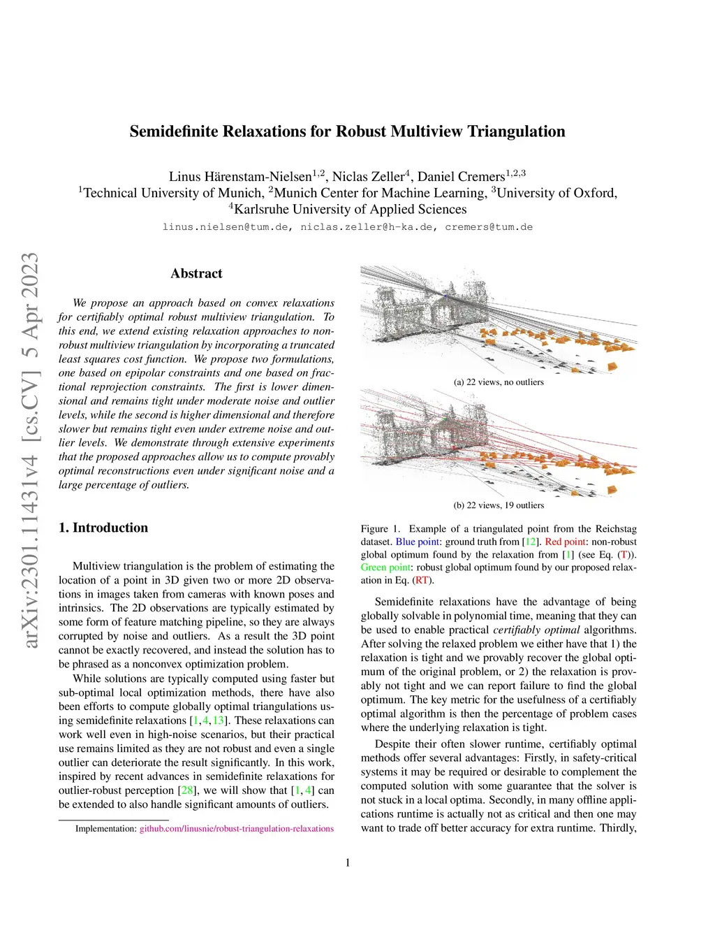 Semidefinite Relaxations for Robust Multiview Triangulation