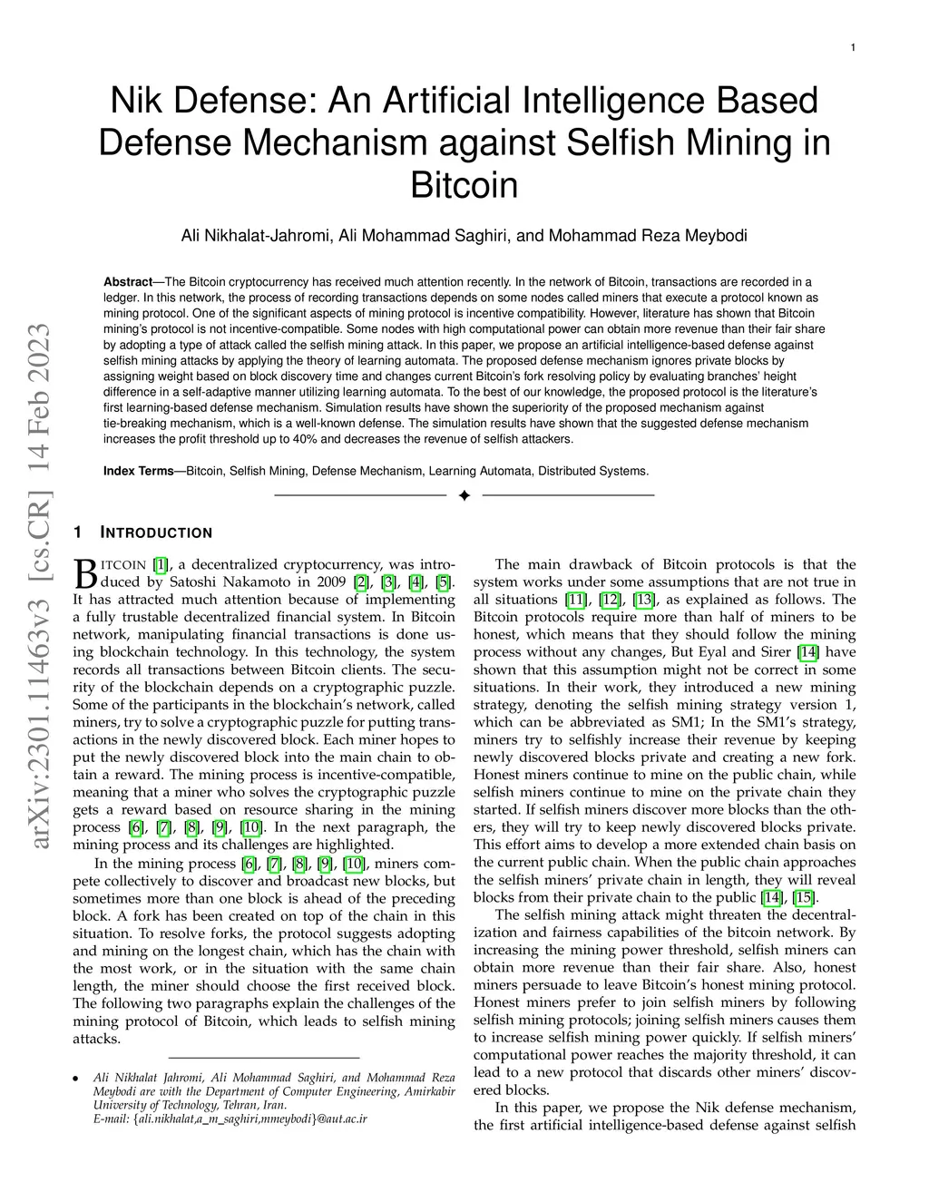 The Bitcoin cryptocurrency has received much attention recently. In the network of Bitcoin, transactions are recorded in a ledger. In this network, the process of recording transactions depends on some nodes called miners that execute a protocol known as mining protocol. One of the significant aspects of mining protocol is incentive compatibility. However, literature has shown that Bitcoin mining's protocol is not incentive-compatible. Some nodes with high computational power can obtain more revenue than their fair share by adopting a type of attack called the selfish mining attack. In this paper, we propose an artificial intelligence-based defense against selfish mining attacks by applying the theory of learning automata. The proposed defense mechanism ignores private blocks by assigning weight based on block discovery time and changes current Bitcoin's fork resolving policy by evaluating branches' height difference in a self-adaptive manner utilizing learning automata. To the best of our knowledge, the proposed protocol is the literature's first learning-based defense mechanism. Simulation results have shown the superiority of the proposed mechanism against tie-breaking mechanism, which is a well-known defense. The simulation results have shown that the suggested defense mechanism increases the profit threshold up to 40\% and decreases the revenue of selfish attackers.