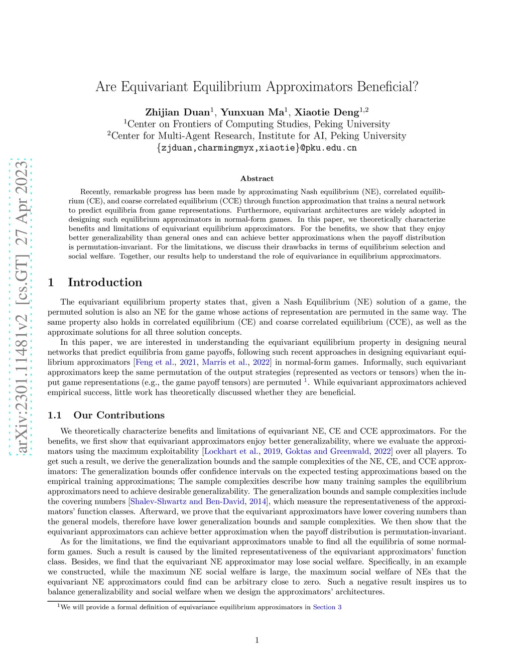 Recently, remarkable progress has been made by approximating Nash equilibrium (NE), correlated equilibrium (CE), and coarse correlated equilibrium (CCE) through function approximation that trains a neural network to predict equilibria from game representations. Furthermore, equivariant architectures are widely adopted in designing such equilibrium approximators in normal-form games. In this paper, we theoretically characterize benefits and limitations of equivariant equilibrium approximators. For the benefits, we show that they enjoy better generalizability than general ones and can achieve better approximations when the payoff distribution is permutation-invariant. For the limitations, we discuss their drawbacks in terms of equilibrium selection and social welfare. Together, our results help to understand the role of equivariance in equilibrium approximators.