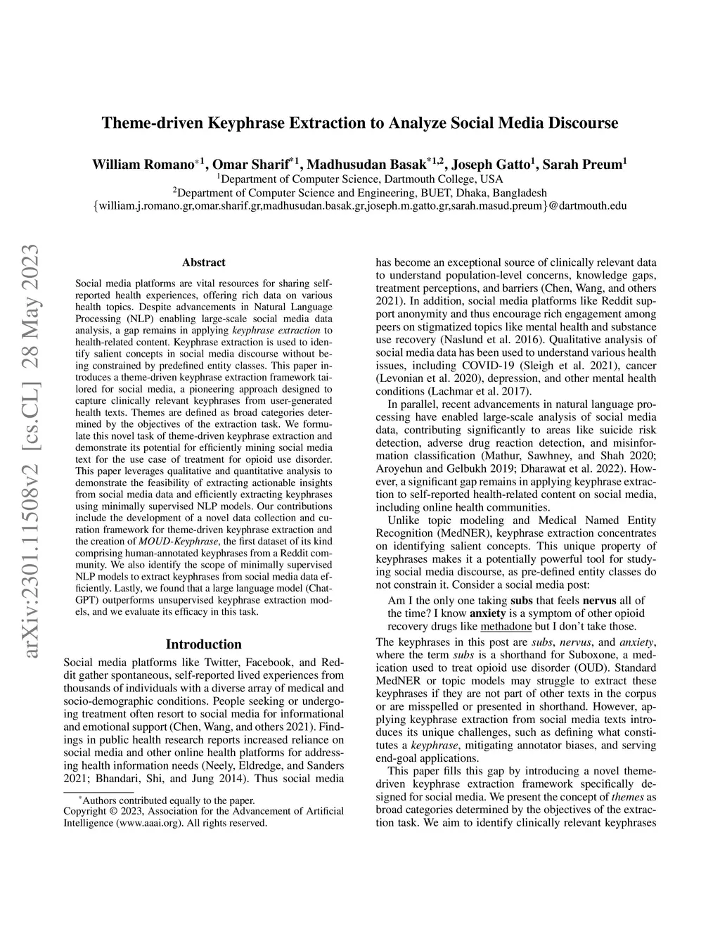 Social media platforms are vital resources for sharing self-reported health experiences, offering rich data on various health topics. Despite advancements in Natural Language Processing (NLP) enabling large-scale social media data analysis, a gap remains in applying keyphrase extraction to health-related content. Keyphrase extraction is used to identify salient concepts in social media discourse without being constrained by predefined entity classes. This paper introduces a theme-driven keyphrase extraction framework tailored for social media, a pioneering approach designed to capture clinically relevant keyphrases from user-generated health texts. Themes are defined as broad categories determined by the objectives of the extraction task. We formulate this novel task of theme-driven keyphrase extraction and demonstrate its potential for efficiently mining social media text for the use case of treatment for opioid use disorder. This paper leverages qualitative and quantitative analysis to demonstrate the feasibility of extracting actionable insights from social media data and efficiently extracting keyphrases using minimally supervised NLP models. Our contributions include the development of a novel data collection and curation framework for theme-driven keyphrase extraction and the creation of MOUD-Keyphrase, the first dataset of its kind comprising human-annotated keyphrases from a Reddit community. We also identify the scope of minimally supervised NLP models to extract keyphrases from social media data efficiently. Lastly, we found that a large language model (ChatGPT) outperforms unsupervised keyphrase extraction models, and we evaluate its efficacy in this task.
