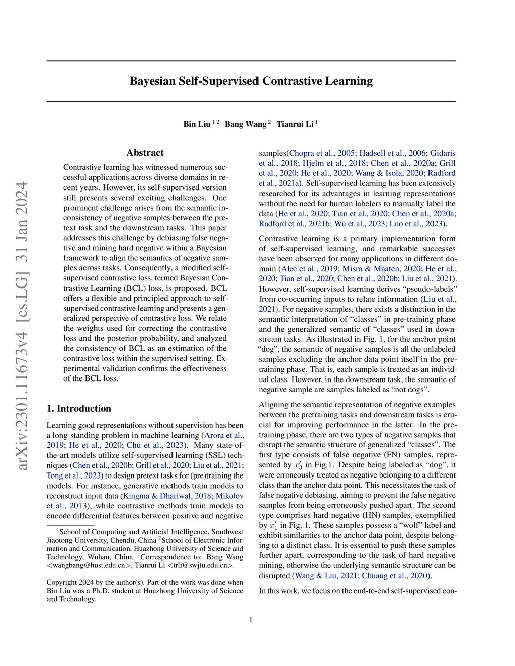 Recent years have witnessed many successful applications of contrastive learning in diverse domains, yet its self-supervised version still remains many exciting challenges. As the negative samples are drawn from unlabeled datasets, a randomly selected sample may be actually a false negative to an anchor, leading to incorrect encoder training. This paper proposes a new self-supervised contrastive loss called the BCL loss that still uses random samples from the unlabeled data while correcting the resulting bias with importance weights. The key idea is to design the desired sampling distribution for sampling hard true negative samples under the Bayesian framework. The prominent advantage lies in that the desired sampling distribution is a parametric structure, with a location parameter for debiasing false negative and concentration parameter for mining hard negative, respectively. Experiments validate the effectiveness and superiority of the BCL loss.