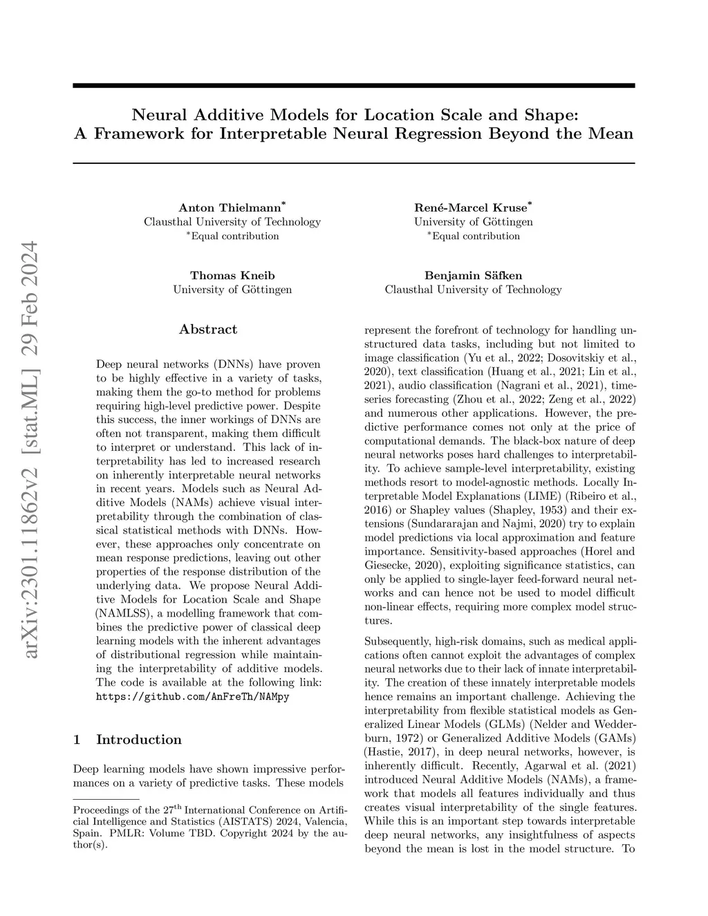 Deep neural networks (DNNs) have proven to be highly effective in a variety of tasks, making them the go-to method for problems requiring high-level predictive power. Despite this success, the inner workings of DNNs are often not transparent, making them difficult to interpret or understand. This lack of interpretability has led to increased research on inherently interpretable neural networks in recent years. Models such as Neural Additive Models (NAMs) achieve visual interpretability through the combination of classical statistical methods with DNNs. However, these approaches only concentrate on mean response predictions, leaving out other properties of the response distribution of the underlying data. We propose Neural Additive Models for Location Scale and Shape (NAMLSS), a modelling framework that combines the predictive power of classical deep learning models with the inherent advantages of distributional regression while maintaining the interpretability of additive models. The code is available at the following link: https://github.com/AnFreTh/NAMpy