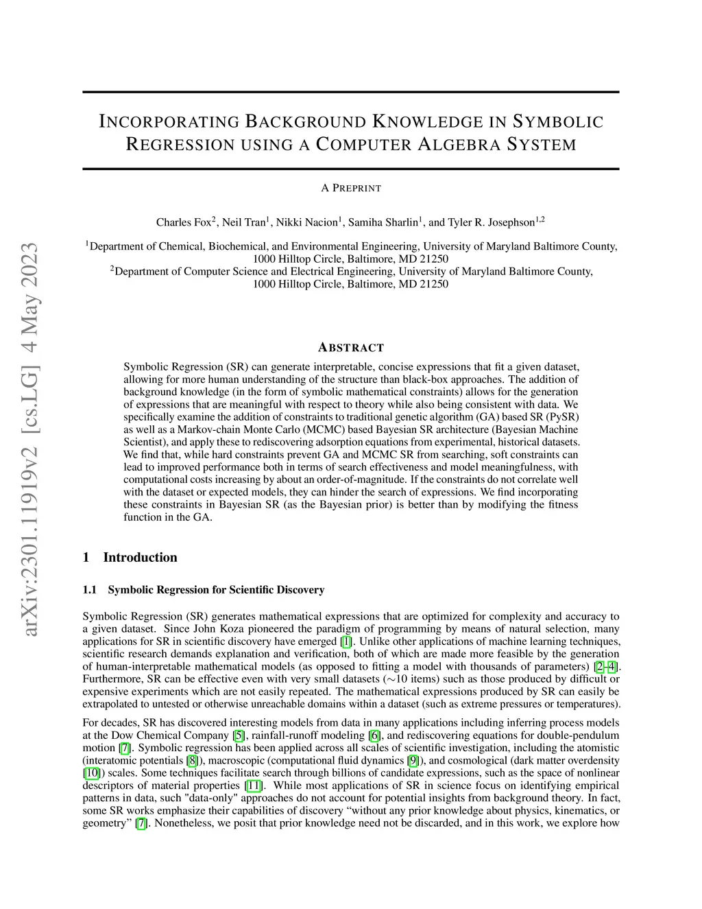 Symbolic Regression (SR) can generate interpretable, concise expressions that fit a given dataset, allowing for more human understanding of the structure than black-box approaches. The addition of background knowledge (in the form of symbolic mathematical constraints) allows for the generation of expressions that are meaningful with respect to theory while also being consistent with data. We specifically examine the addition of constraints to traditional genetic algorithm (GA) based SR (PySR) as well as a Markov-chain Monte Carlo (MCMC) based Bayesian SR architecture (Bayesian Machine Scientist), and apply these to rediscovering adsorption equations from experimental, historical datasets. We find that, while hard constraints prevent GA and MCMC SR from searching, soft constraints can lead to improved performance both in terms of search effectiveness and model meaningfulness, with computational costs increasing by about an order-of-magnitude. If the constraints do not correlate well with the dataset or expected models, they can hinder the search of expressions. We find Bayesian SR is better these constraints (as the Bayesian prior) than by modifying the fitness function in the GA
