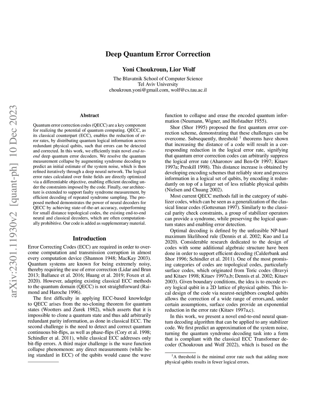 Deep Quantum Error Correction