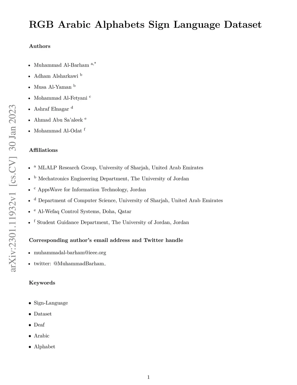 RGB Arabic Alphabets Sign Language Dataset